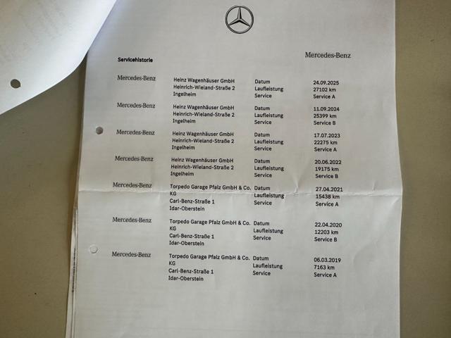Manutenzione effettuata regolarmente con ultimo tagliando eseguito a settembre 2025 presso Mercedes Service a 27.102Km e scadenza revisione ministeriale a marzo 2027.