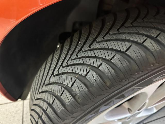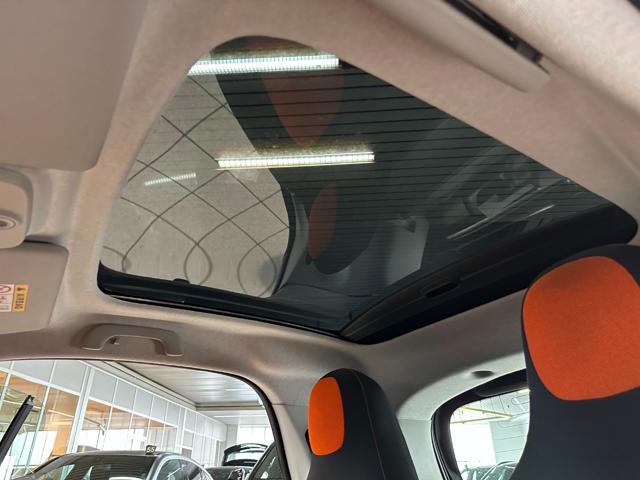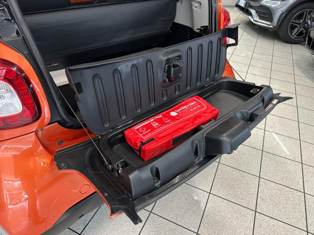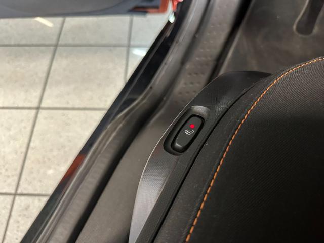 Colore Arancione e nero metallizzato con cerchi in lega da 15" e sedili in tessuto nero-arancione.