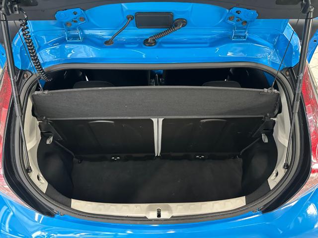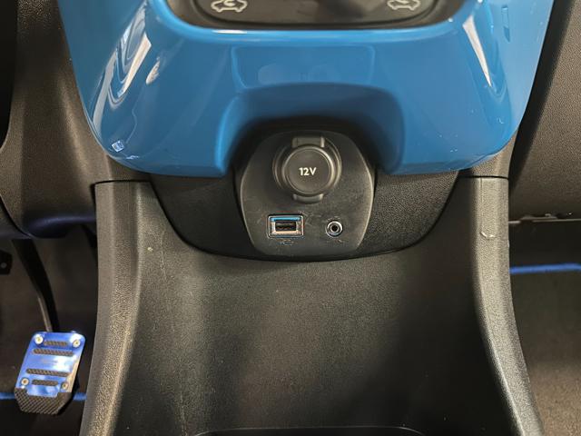 Colore Blu ciano pastello con cerchi in lega da 15" e sedili in tessuto neri.